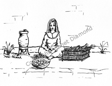 This lady was making her living by selling spring onions and lemons. The pot to the left of her was a common sight – they were for water (there is a small cup on top) and were slightly porous, which I was told helped keep the water cool as it evaporated.